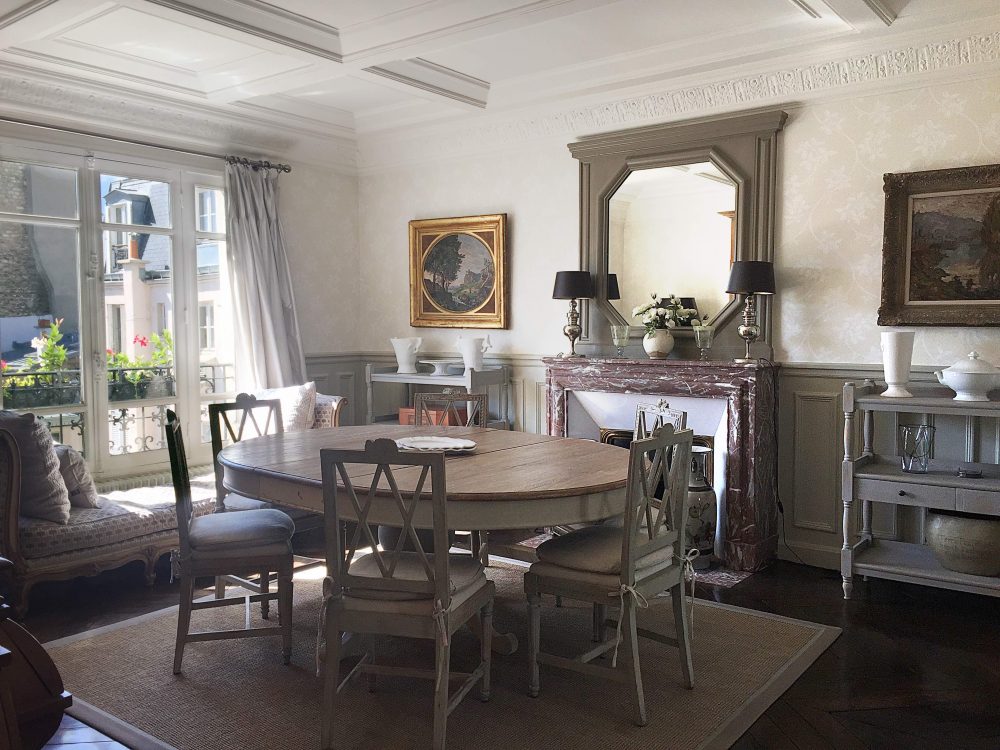 Rooftop views of the Left Bank, antique hardwood floors, fireplaces and lavish crown molding make this a breathtaking apartment. The living room is decorated in relaxing pastel tones. Moreover, French windows in the dining room give onto the balcony. Additionally, the kitchen features top-of-the-line appliances and has a charming breakfast nook.