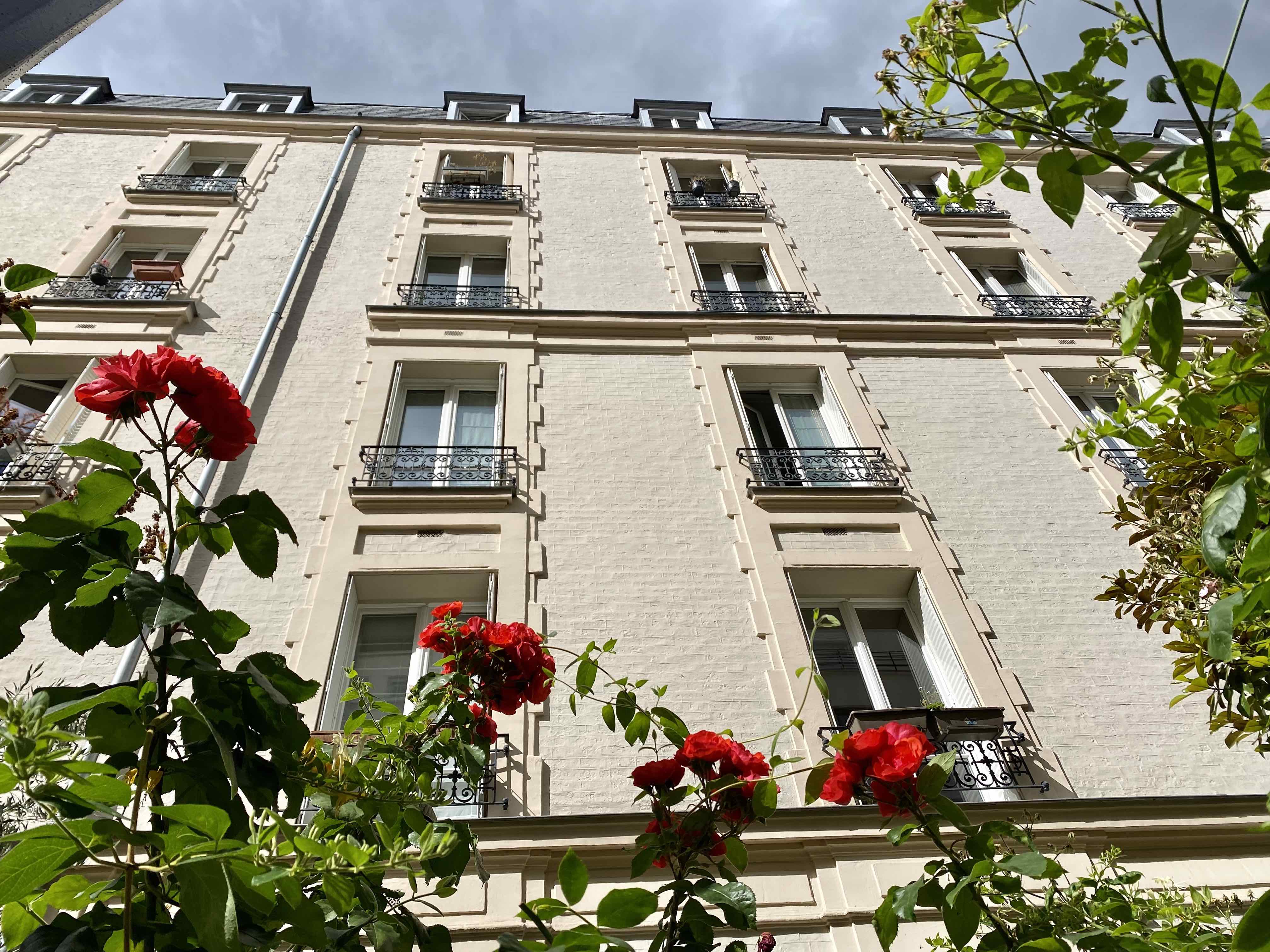 This Alésia Paris renovation opportunity sits on a quiet pedestrian cul-de-sac with greenery. On the 3nd fl. without elevator of a period building, it offers two to three bedrooms. In Paris’ 14th district, the rue d’Alésia with its many shops and restaurants lies just minutes away. The picturesque Montsouris park is also in walking distance.