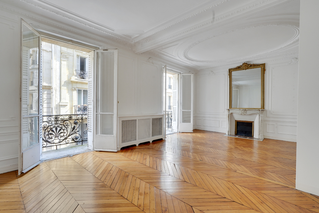 This two-bedroom apartment to renovate in Paris’ 10th district is near the place de la République. The sunny property with balcony sits on the 2nd floor with elevator of a well-maintained period building. It lies on a quiet side street, and the trendy Canal Saint Martin is also nearby.