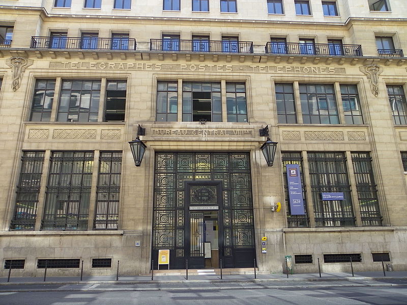 The first is the Louvre post office on rue du Louvre in the 1st arrondissement (district), built in 1888. The second is the rue la Boétie post office in the 8th arrondissement. It is a 1920s reconstruction of a Hausmannian building.