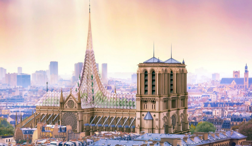 Just some of these proposals included a new roof made of stained glass and a remodeled spire crafted from carbon fibers. Even a huge column of light shining up to the sky.