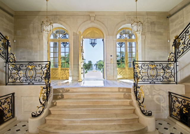 As reported here earlier this year, the palatial mansion, filled with Grand Siècle décor, is situated between Versailles and Marly-le-Roi and located about 15 minutes outside the Parisian neighborhood of the Triangle d’Or. It sits within a 56-acre park and blends 17th century-inspired design with cutting edge technology.