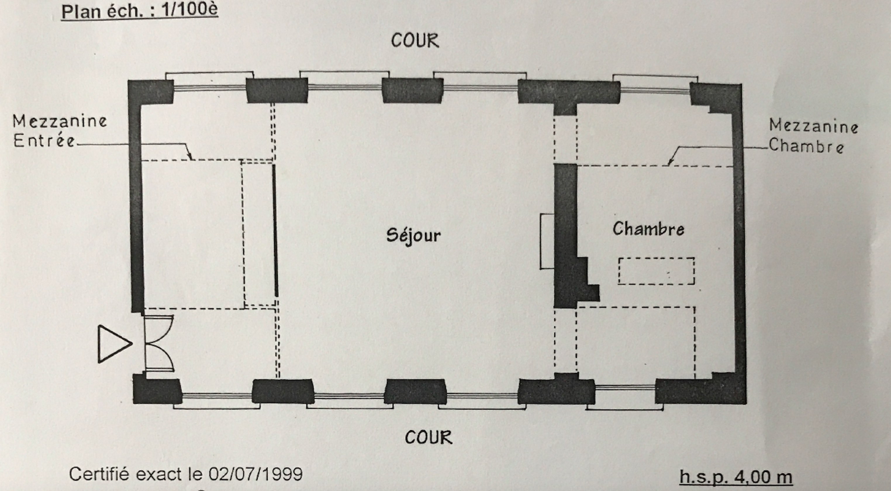 This two bedroom air conditioned Marais apartment is on the first floor without elevator of a 17th century building. Bathed in sunlight, it offers 16 ft. ceilings. Floor to ceiling windows overlook a quiet street on one side and a courtyard on the other.