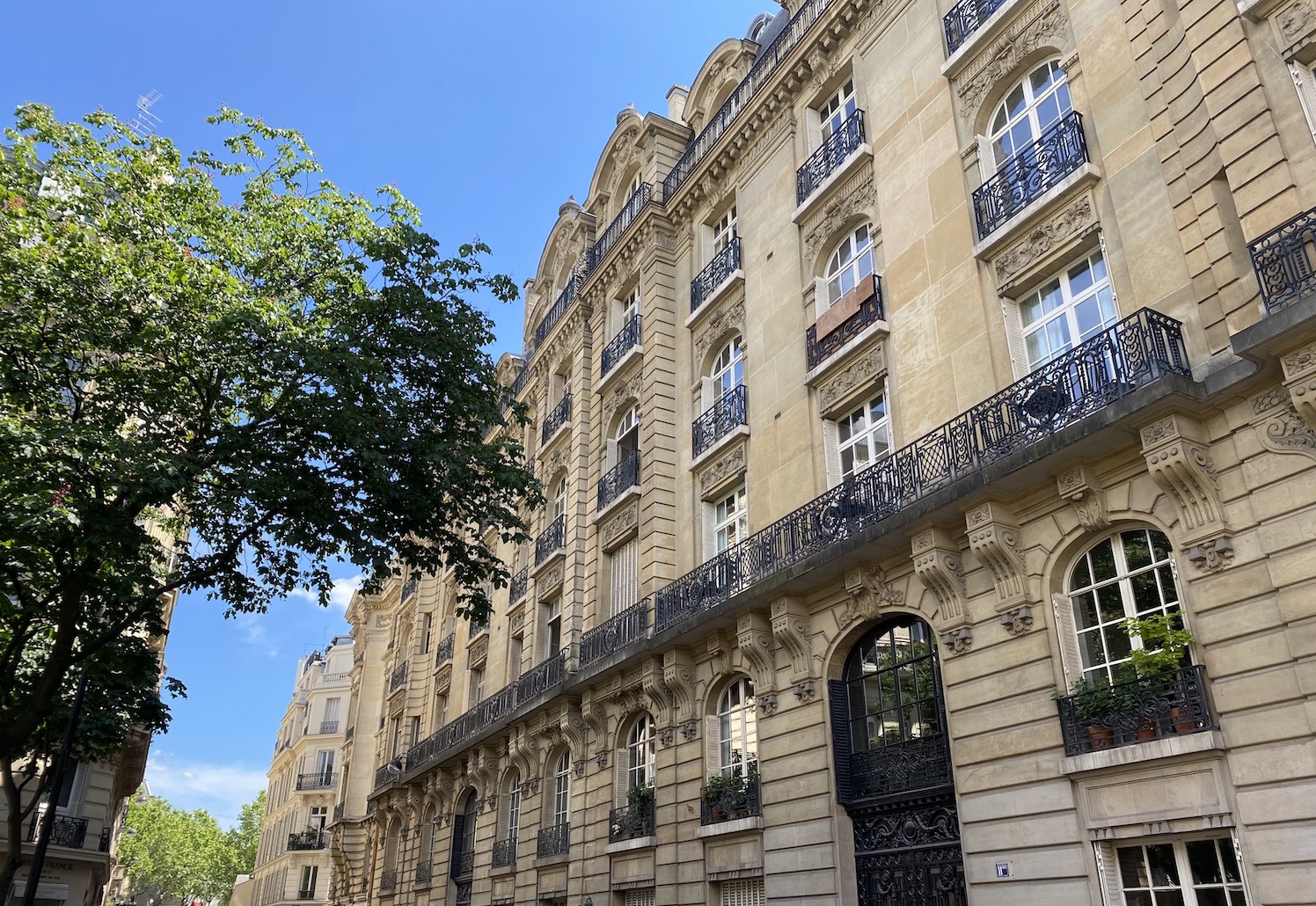 This quiet sunny atelier for sale in Paris faces a tree lined square. It sits on the ground floor of a grand Haussmannian building between the French parliament and the rue du Bac. Currently a studio, it can also be configured as a one bedroom.