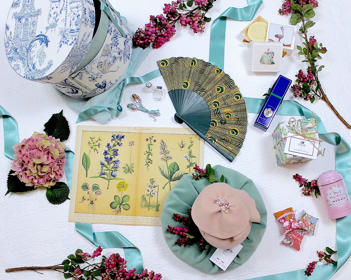 France By Lilly creates beautiful, bespoke gift boxes. Although looking like a classic hatbox decorated with Toile de Jouy, inside they contain gifts, curiosities, and sometimes charms and antiques.