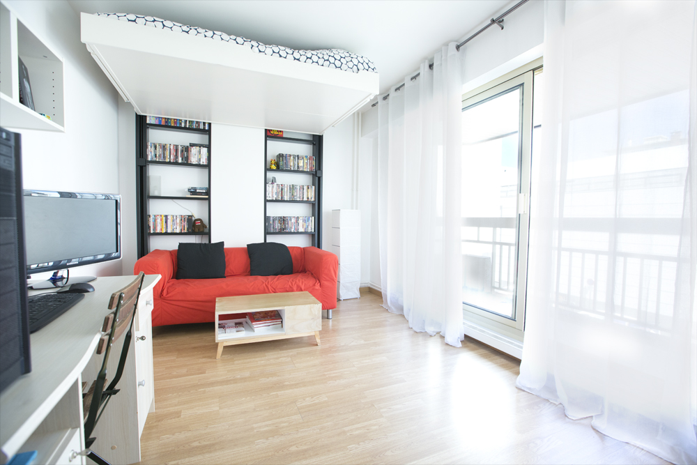 The sunny property benefits from an excellent floor plan. Floor to ceiling sliding glass doors to the large balcony run the length of the main room. The full size bed can be automatically raised to the ceiling to maximize space below.